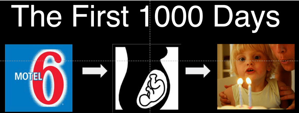 The first thousand days after conception, that is around the time you are blowing out two candles on your second birthday cake, is now considered the critical period when a large fraction of adult health is programmed.